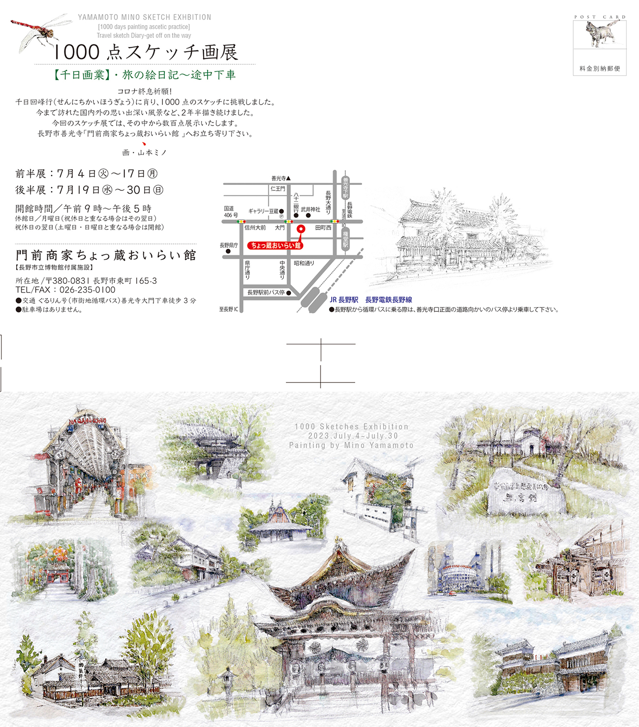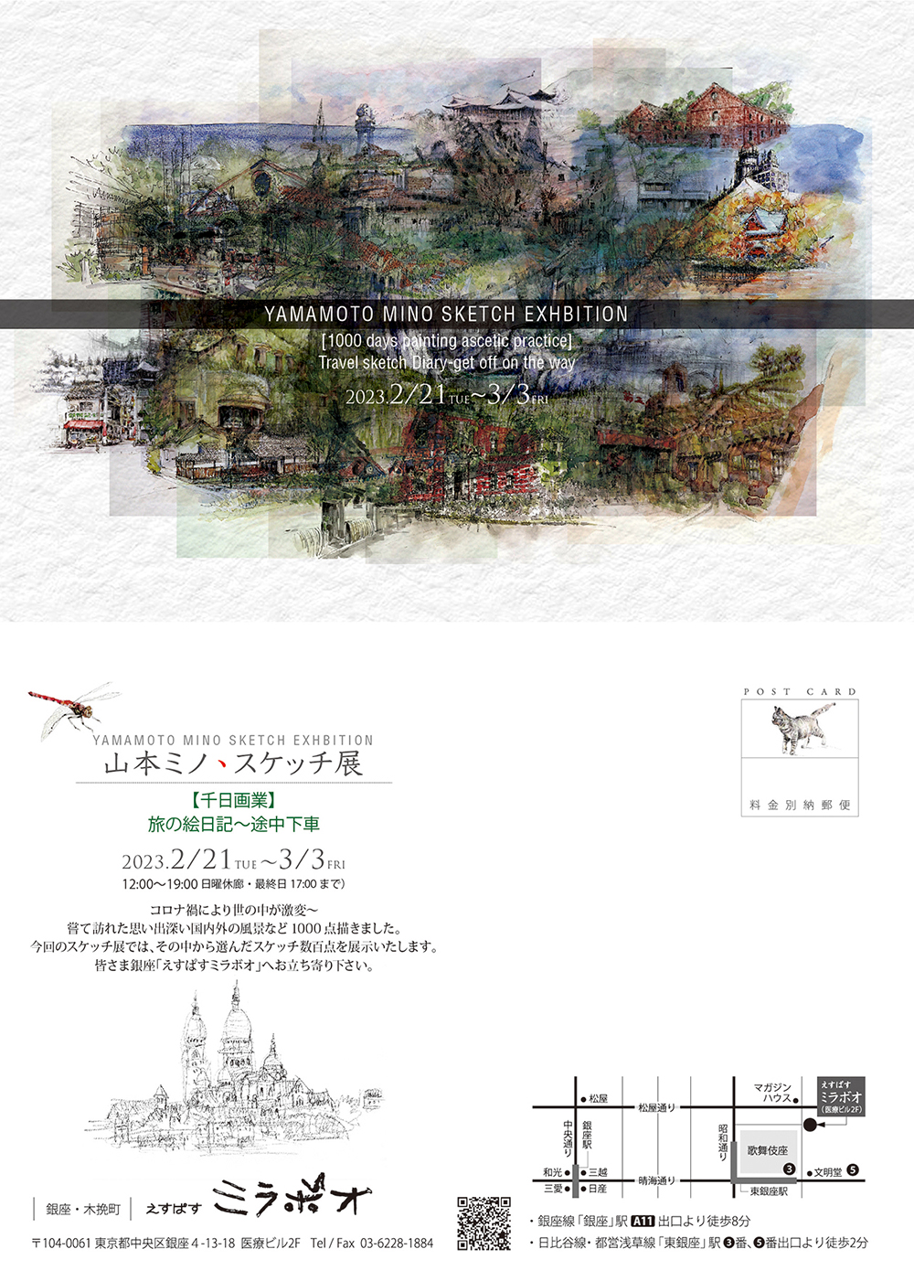 山本ミノ・1000点スケッチ展/千日画業・旅の絵日記~途中下車